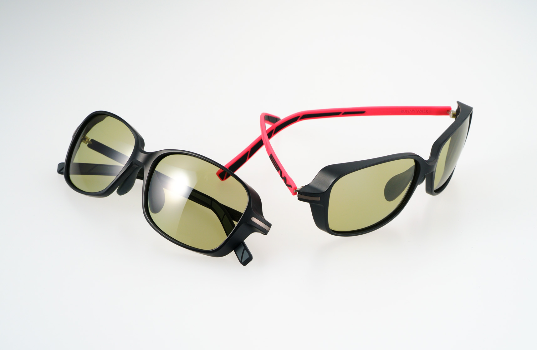 BW-029よりもフロント横幅が少し大きめで、スポーティーなスクエア寄りのレンズ形状。フロント左右にやや厚みを持たせたることでサイドから差し込む光を遮り、より顔に沿うようなデザインに。